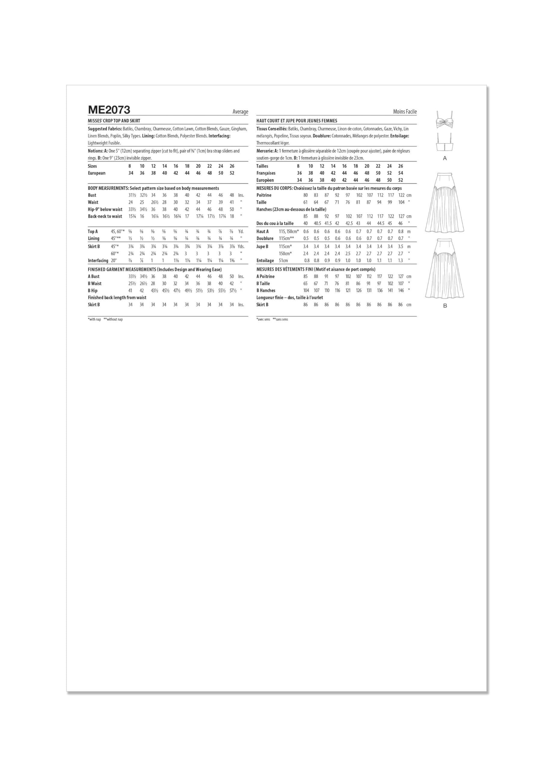 Know Me ME2073K5 Misses' Twist Front Crop Top and Midi Length Skirt Sewing Pattern Packet by Alisha Grace, Design Code ME2073, Sizes 8-10-12-14-16