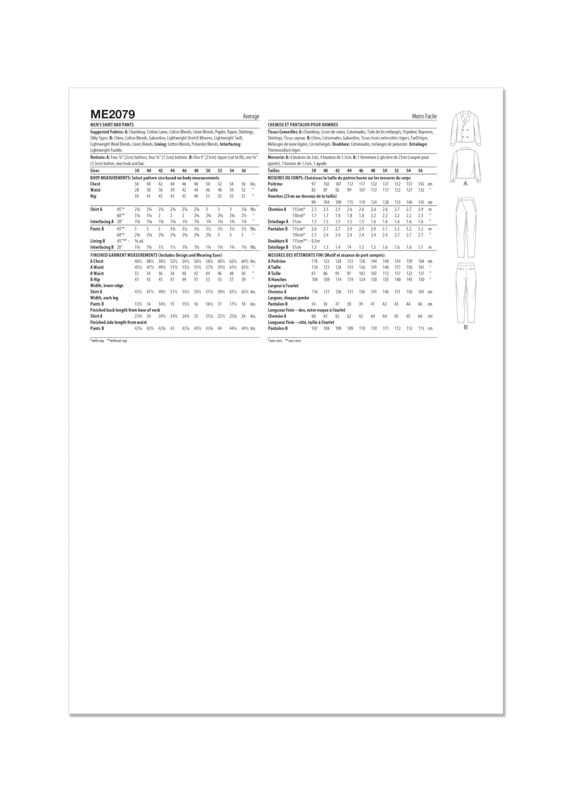 Know Me Men's Double Breasted Loose Fit Shirt and Asymmetric Fly Pants Sewing Pattern Packet by Julian Creates, Design Code ME2079, 38-40-42-44-46, Multicolor
